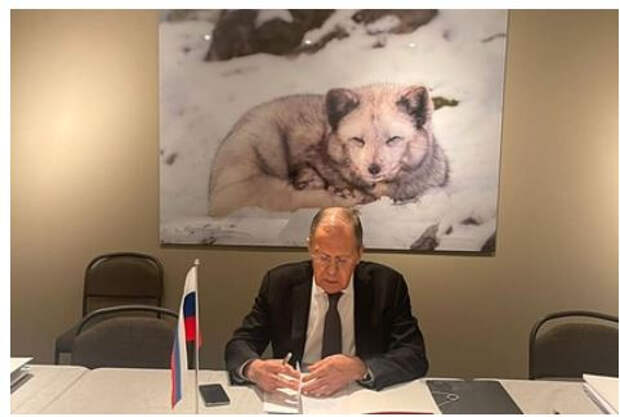 Пользователей соцсетей восхитила фотография министра иностранных дел России Сергея Лаврова, сделанная официальным представителем ведомства Марией Захаровой. На кадре глава МИД запечатлен за столом, над которым висит фотография с изображением песца. Запись опубликована в Facebook Захаровой.